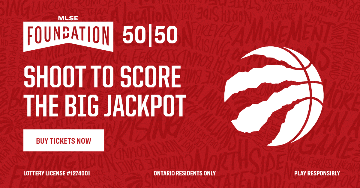 Get in the game and play with your Raptors to score the growing jackpot! Buy your 50|50 tickets today to be our next winner! Ticket proceeds support MLSE Foundation's mission to help kids and youth in the community. Shoot your shot to SCORE!