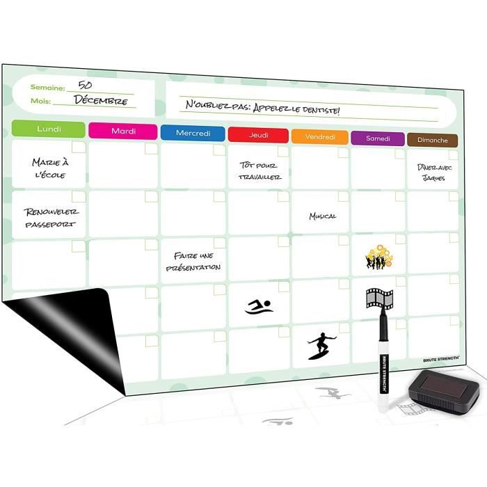 19 avis. - Produit Cdiscount à volonté. 1 Tableau Magnétique Blanc + 1 Stylo effaçable à sec avec clip adhésif - Format A3 - 297 x 420 mm / 11.7 x 16.5 inch - 140 grammes - Finition brillant premium - Pratique / Durable / Flexible / Découplable à la taille souhaitée - Pour tous vos mémos, vos notes et la planification de vos repas en.